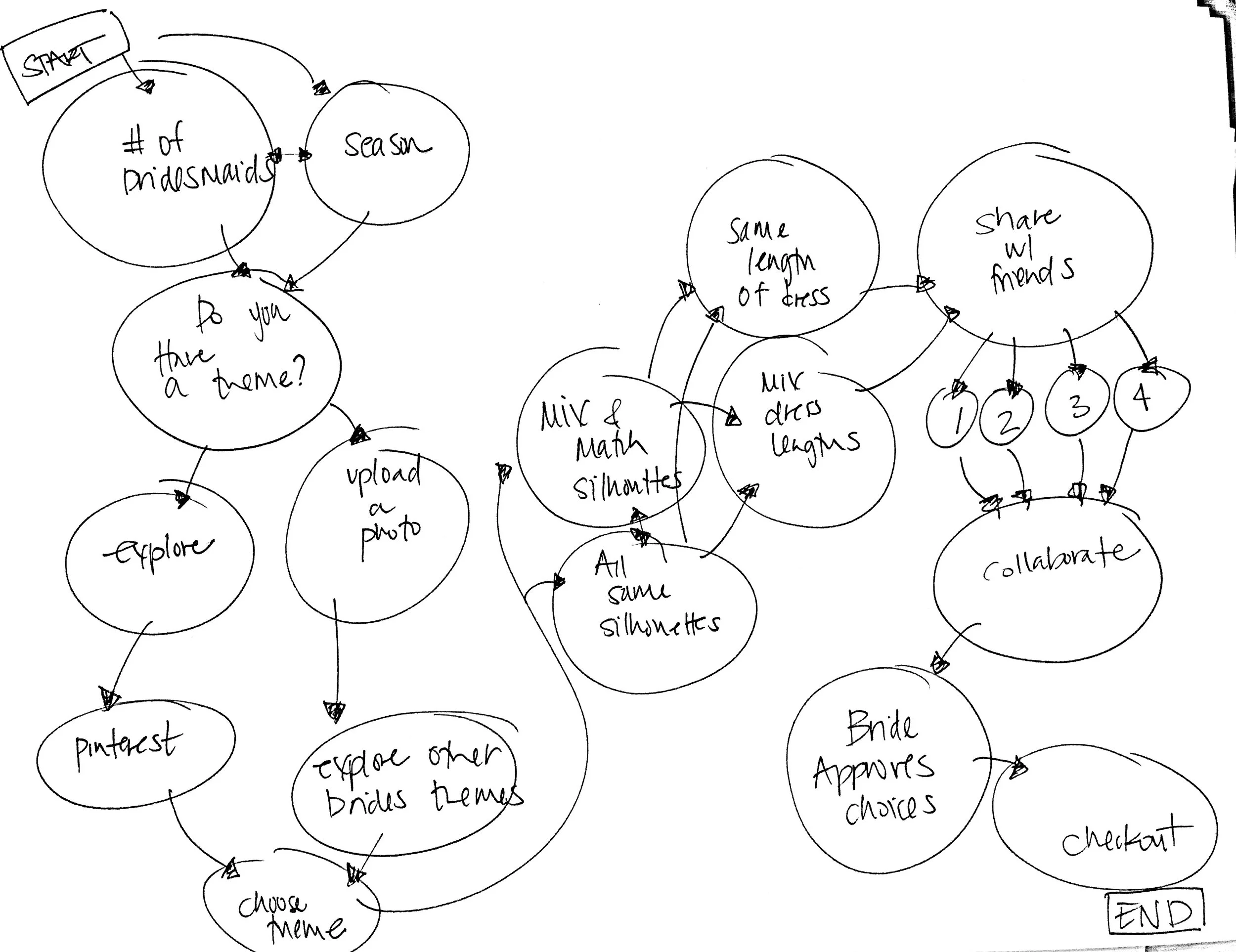 The intent was to create customizable dresses that give brides and bridesmaids equal control of the final dress selections. There are many customizable bridal fashion brands, but I wanted to create one for women who already know what they like. The goal is to create a brand where friends can collaborate and create brand loyalty. The breath of styles offered on the platform should be in line with the target customer’s personal design aesthetic.